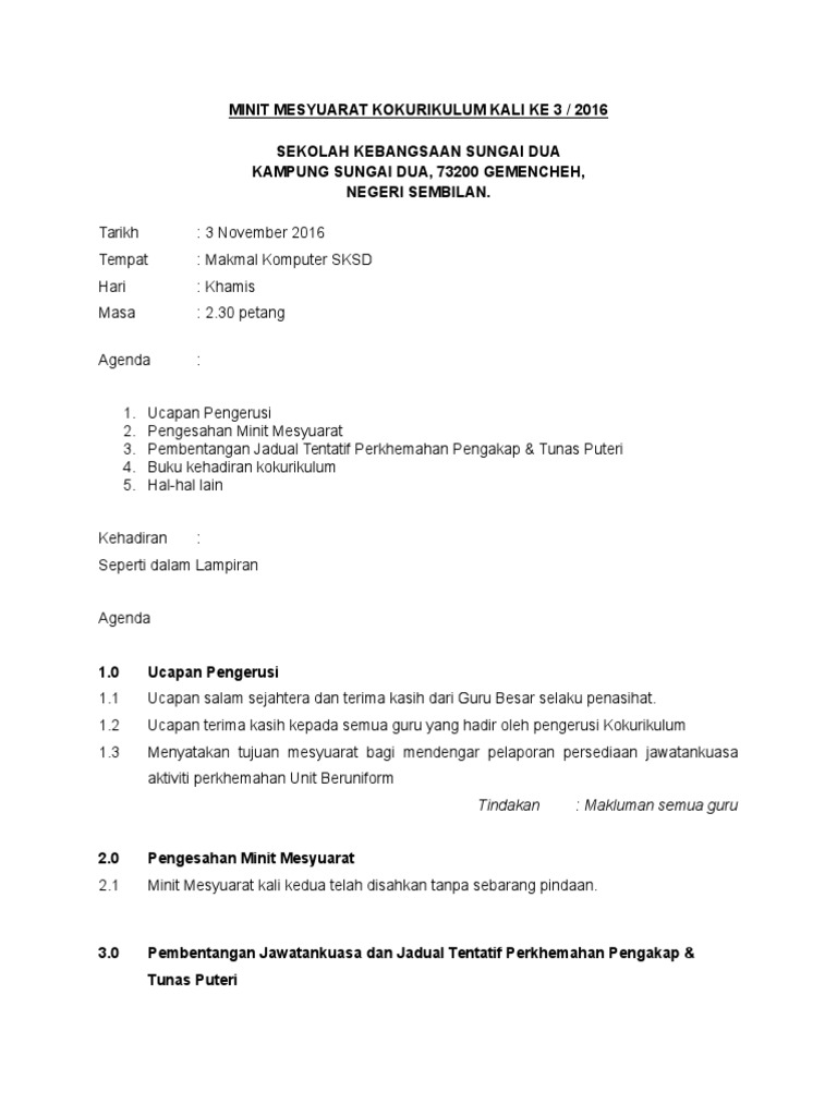 Minit Mesyuarat Kokurikulum Kali Ke 3 Pdf
