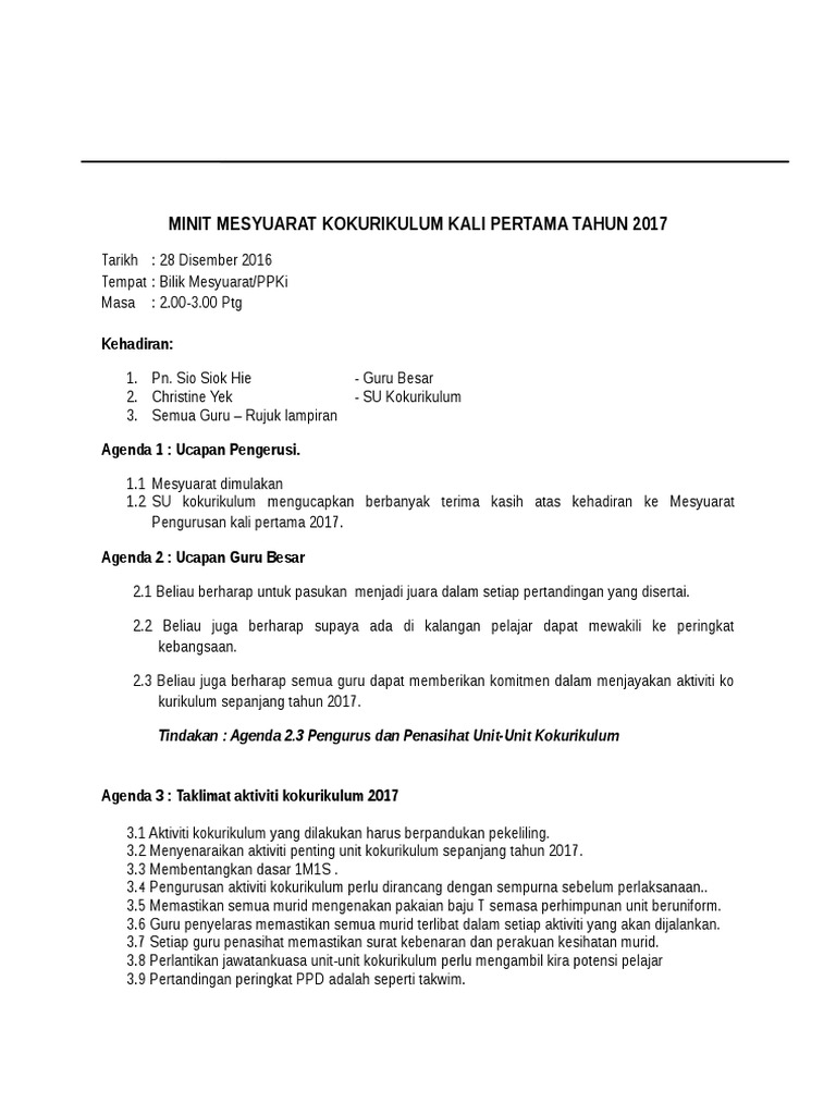 Minit Mesyuarat Kokurikulum Kali Pertama 2017 Pdf